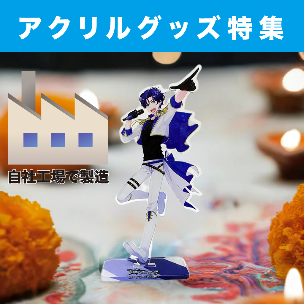 特に、自社工場にて、アクリルキーホルダーやアクリルスタンドなどの製造やTシャツなどのガーメント印刷の製造を行っており、データから商品になるまで一気通貫して行うことでコストパフォーマンスの良い価格と品質とサービスをご提供しております。